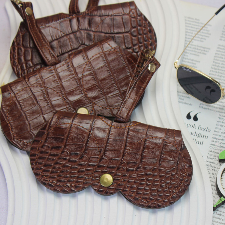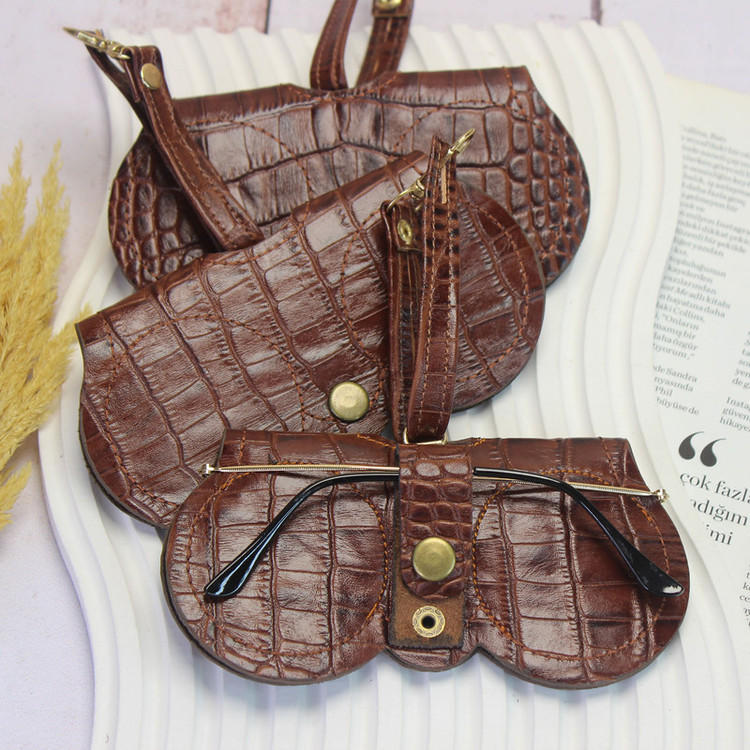 کیف عینک مدل چرم طبیعی بند دار کد KE-006